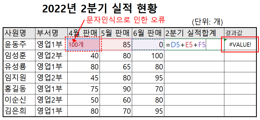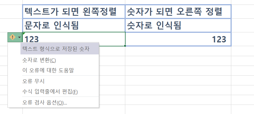 - 원인: 숫자 앞에 공백이나 특수문자가 포함되어 있거나, 셀 서식이 텍스트로 설정되어 있을 수 있습니다.